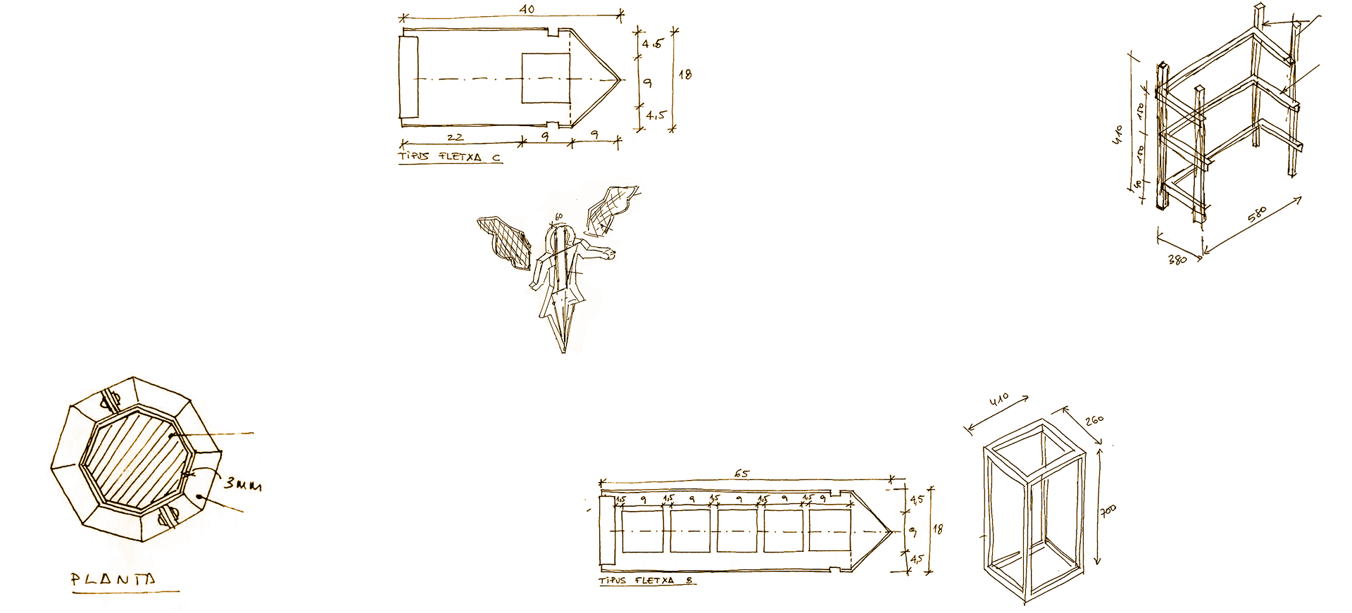 Dibujos a mano alzada que nacen de ideas que más tarde se proyectan en objetos reales.